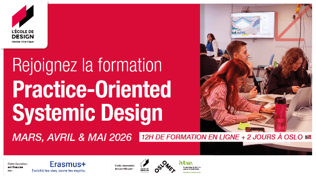 Discover a practical, international program to understand the complexity of systems and co-design sustainable solutions. Led by L’École de design Nantes Atlantique, OsloMet, and HTW Berlin, this training immerses you in systemic design through online sessions and a 2-day hands-on workshop in Oslo.
